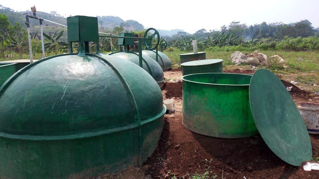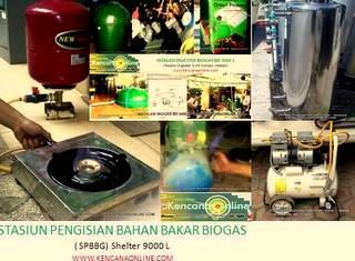 Instalasi Shelter Bio Elektrik BD 9-9000 L yang difungsikan sebagai Stasiun Pengisian Bahan Bakar Biogas ( SPBBG) shelter 9-9000L adalah suatu instalasi pembangkitan biogas terdiri dari 9 unit digester 9000 L, yang terbuat dari fiberglass bahan resin PL 07 LPE, jenis mat Wr 400 (mat anyam) dan mat Jushi -Kwe 300 (acak) 300 x 104, catalyst butanox, mirror glase, pigmen HCA dolphin green serta aerosil HDK ini memiliki ketebalan dinding 5 mm, Instalasi pembangkitan biogas dilengkapi 1 mesin pencacah organik (MPO 850) Elektrik, generator 5 KVA, 9 unit pemurnian biogas MP 24150, serta sembilan ( 9) unit kompresor membran MP1HP ( oilless) untuk fungsi pengisian biogas ke tabung. Instalasi Biogas dalam 1 shelter BD 9-9000 L memerlukan bahan baku atau berkemampuan mengolah limbah biomassa ( kotoran ternak, eceng gondok, limbah tahu, dll) atau sampah organik untuk pertama kalinya 63 m3 ( setara 21 ton) dan hari selanjutnya 12, 6 m3 atau 3, 78 ton/ hari. Setiap hari shelter BD 9000 L ini akan menghasilkan biometan RNG ( Renewable Natural Gas), setelah pemurnian dari gas impuritas ( H2S, H2O, CO2) dengan kemurnian > 80 % metan ( CH4). Setelah dikurangi oleh penggunaan energi bagi penggerak motor ( mesin pencacah dan kompresor), akan didapatkan netto sebanyak 81 m3. Dengan kompresor MP1HP – yang digerakkan genset biogas 5 KVA, biogas diisikan dengan pompa kompresi ( refill) ke tabung. Bagi pilihan distribusi kepada rumah tangga sederhana, setiap hari akan menghasilkan 405 tabung BizGas ( kapasitas 20 liter, tekanan 8 Bar). Biogas dalam tiap tabung BizGas ini mampu mencukupkan masak keluarga kecil per hari, atau Instalasi SPBBG BD 9-9000 L mampu membuat mandiri energi masak 405 rumah tangga secara terus menerus. Pilihan (optional) stasiun SPBBG ini menjual biomethan ( biogas murni) dalam tabung bertekanan lebih besar hingga 200 bar. Bagi kepentingan itu diperlukan 3 unit kompresor DMC-5 berkapasitas pengisian 5,5 m3/ jam, mampu mengisikan seluruh output gas 168 m3/ hari kedalam 16 tabung baja komposit BizGas 55 L ( 200 bar) kapasitas isi 10 m3/ buah dengan kesetaraan kalor setara 5 kg LPG/ tabung. Perolehan lain dari Instalasi adalah pupuk organik berkualitas hasil fermentasi biomassa sebanyak 1, 2 ton ( 30 % dari input material harian) serta lebih 8 m3 pupuk cair organik (POC).