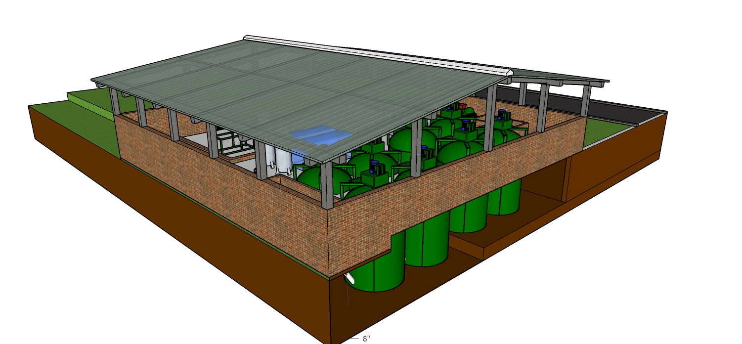 Setiap hari instalasi shelter BD 9-9000 L menghasilkan ( bersih) 81 m3 biometan, yakni suatu jenis bahan bakar hasil dari proses pemurnian biogas. Bahan bakar sebesar diatas adalah output dari proses fermentasi (reaktor kedap udara) dalam 9 unit digester biogas BD 9.000 L atas bahan baku isian (bbi) 2, 025 ton/ hari sampah dan biomassa segara/ hari. Bahan baku biomassa ( limbah dan kotoran ternak, gulma kebun, gulma perairan seperti eceng gondok, limbah industri pengolahan pertanian, sampah organik) dapat diperoleh serta dapat diikhtiarkan di lokasi manapun.