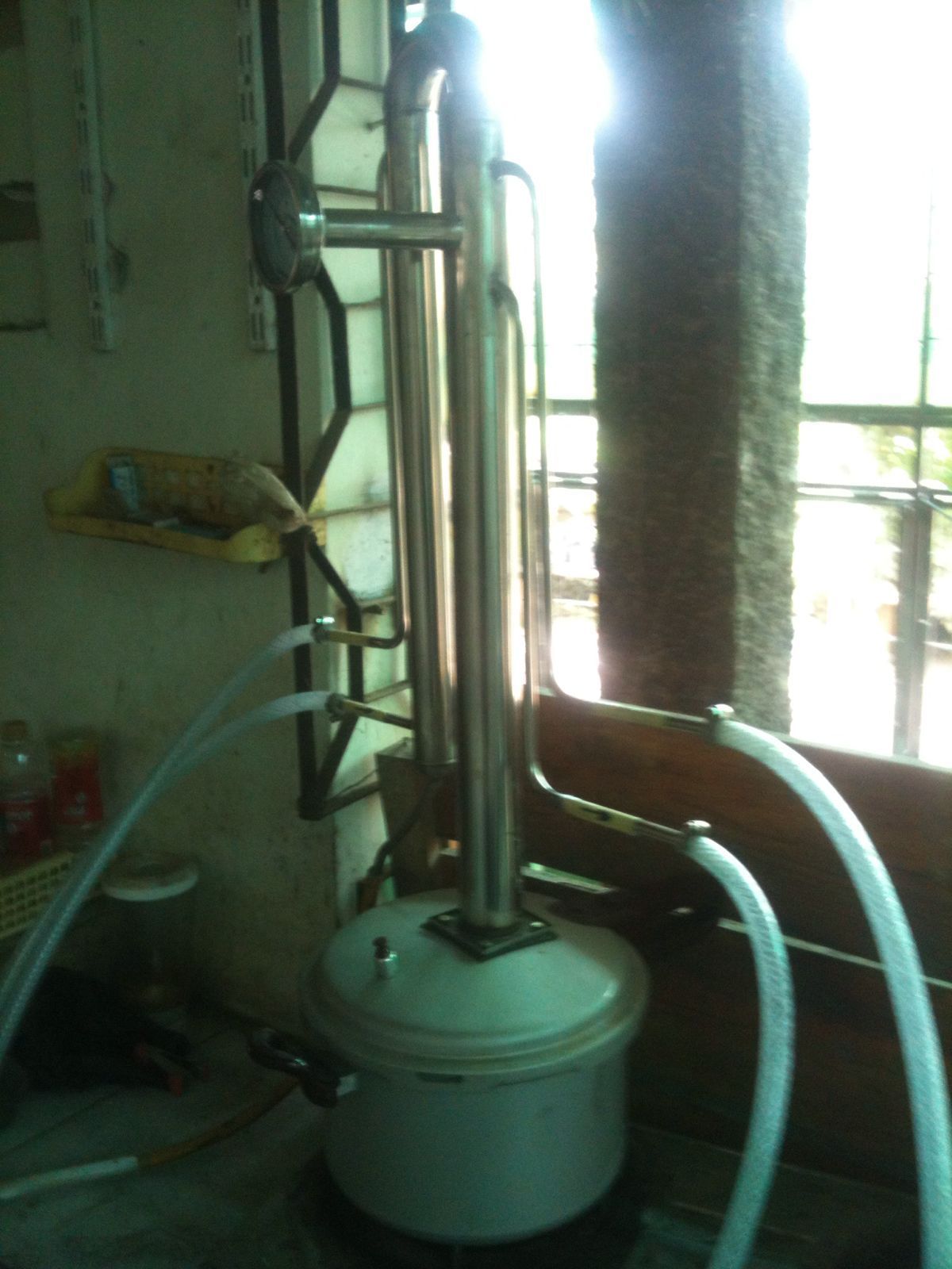 6. destilator ethanol 2 unit masing-masing berkapasitas per batch 16 liter per 60 menit. Dapat digunakan terus sepanjang hari hingga mendestilasi 10-15 kali @ 16 liter/ batch atau setara kapasitas ~ 100 liter sd 250 liter atau akan didapatkan 15 sd 20 liter ethanol per hari.