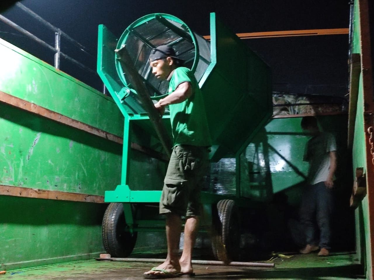 Mesin Pemilah Pengayak MPP 3000 Kapasitas : 5 – 10 m3/jam; PLT ; 300x120x120 cm, Kawat Pengayak : Stainless Steel 25 mm, Berat : 150 kg, Penggerak Mesin Jiang Fa 12 HP,