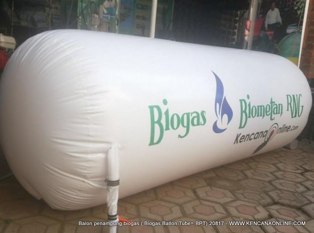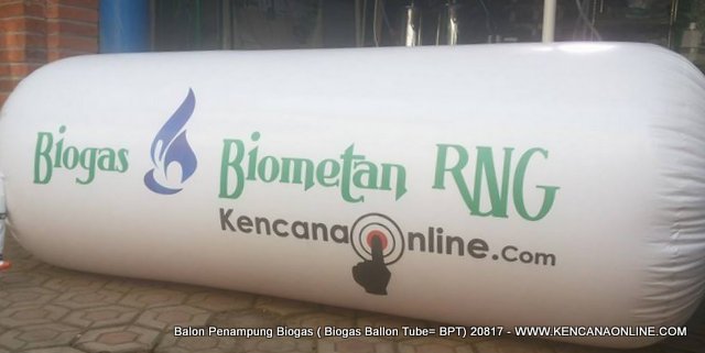 Balon penampung biometan RNG hasil pemurnian biogas (Biogas Ballon Tube=BPT) 20815 dibuat menggunakan bahan PVC Poly (vinyl chloride) tebal 0,17 mm, berdimensi (panjang= 200 cm, diameter= 80 cm) memiliki  kapasitas tampung 1 m3 . Disajikan per 6 buah/ box kemasan (1/2 lusin).