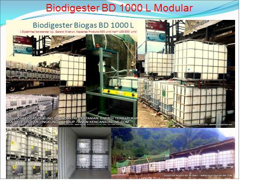 – 1 unit Digester Biogas BD 1000 L, lengkap dengan 5 pack aktivator bakteri pembangkit gas metan GP7 cukup bagi pembangkitan energi selamanya, 1 set pemurnian biogas MP 1270 dan 1 unit Pencacah sampah FMM 1200 ML, mampu menghasilkan 1 m3 biogas~ SETARA dengan energi pembakaran 1/2 kg LPG bagi pemenuhan kebutuhan sepanjang tahun masak 1 keluarga/ hari