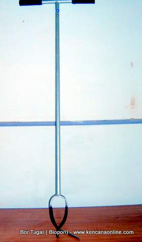 Teknologi tepat guna ramah lingkungan guna mengatasi masalah akibat pemupukan kimia ( an- organik) dan genangan air ( banjir) adalah dengan membuat bor atau tugal Lobang Resapan Biopori. Sebagaimana diketahui, pemupukan tanaman dengan menggunakan pupuk prill ( tabur) oleh para petani selama ini seringkali berlebihan dibanding dosis rekomendasi, pupuk ditabur jauh dari pohon dan mulut akar serta pupuk terbawa aliran air ( top leaching run- off) dan menguap terbawa panas. Di sekitar perakaran tanaman keras juga seringkali terdapat genangan air akibat drainase kebun yang buruk atau perkebunan berada di areal bawah permukaan air sungai. Genangan air dalam skala luas juga bisa terjadi akibat curah hujan yang tinggi tidak disertai kemampuan tanah menyerap dan memerangkap air karena terbatasnya lobang resapan. Tanah yang terlalu lama diasupi pupuk kimia dan tanah di sekitar perkotaan dan bangunan umumnya akan sulit menyerap air hujan. Manfaat Lobang Resapan Biopori adalah meningkatkan daya resapan air, meningkatkan peran aktifitas fauna tanah dan akar tanaman serta mengatasi masalah genangan air akibat banjir dan drainase yang buruk. Lobang dapat difungsikan ikut mengatasi sampah dengan diisi jenis organik ( sisa makanan dan masak) menjadi lobang cerdas organik, dengan diberi aktivator kompos GP1 Spesifikasi Bahan pipa galvanis anti karat, Bahan mata bor stainless steel 3 mm, Diameter pipa 12,5 mm dengan panjang 1,2 m dan tangkai 40 cm, Diameter mata bor (100 mm/4 inch) |