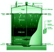 Terbuat dari kontruksi plat esser dengan pengecoran oleh 1 ply bahan resin PL 07 LPE, jenis mat Wr 400 (mat anyam) dan mat Jushi -Kwe 300 (acak) 300 x 104, catalyst butanox, mirror glase, pigmen HCA dolphin green serta aerosil HDK ini hingga memiliki ketebalan dinding 7 mm. Berdimensi ( Tinggi = 3 m, Keliling = 17,2 m), K = 2πr, r = 2,7 meter~ V= π r2T= (3,14)(2,7) 2(2,45) atau volume/ unit tangki = 68 m3 (meter kubik/tangki) atau total volume 3 unit tangki digester 204 m3 ~ 200 m3.