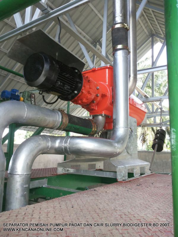 9. separator Cri-Man SM 260/ Basic 3G kapasitas 10 m3/ jam guna memisahkan slurry ( solid compost) dan cair (liquid) sehingga pupuk padat dan cair terpisah otomatis, dapat mengatur ( adjustable) kadar air pada kompos padat ( solid compost) hingga memudahkan dalam pengemasan serta mobilisasi kompos keluar area,