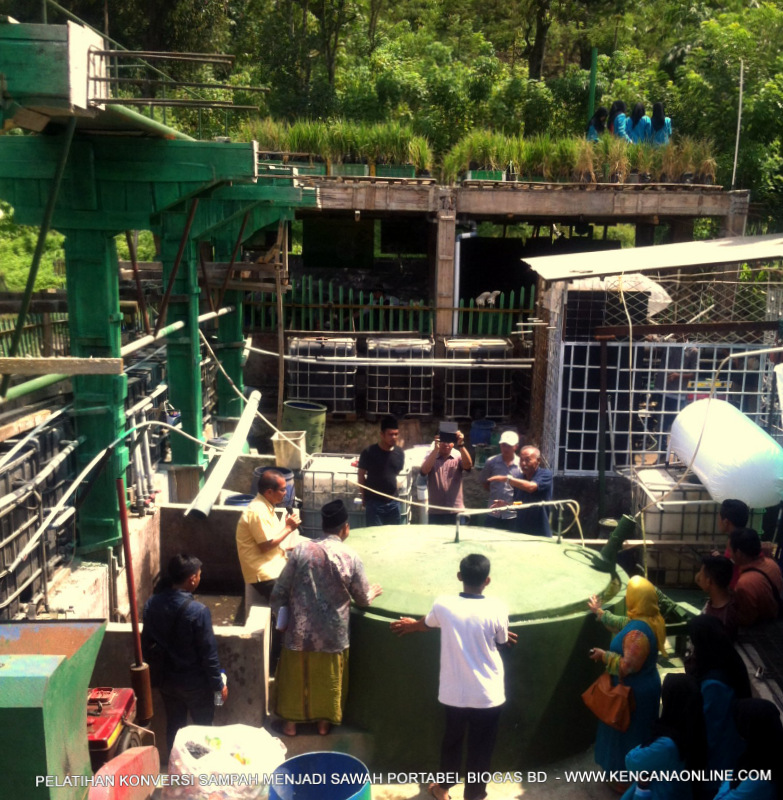Instalasi Sawah Portabel dan Biodigester BD 3000 L adalah konfigurasi alat konversi sampah organik dan biomassa ( kotoran hewan, limbah pertanian perkebunan, gulma kebun, guma air eceng gondok dan sejenisnya) menjadi bahan bakar (kompor), padi beras, ikan dan sayuran.