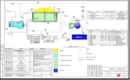 Terbuat dari kontruksi plat besi MS ( Mild steel) atau plat kapal ( Marine steel) 12 x 6″x20″ dengan pengecoran oleh 2 ply resin PL 07 LPE, jenis mat Wr 400 (mat anyam) dan mat Jushi -Kwe 300 (acak) 300 x 104, catalyst butanox, mirror glase, pigmen HCA dolphin green serta aerosil HDK ini hingga memiliki ketebalan dinding 13 mm, berdimensi diameter 12 meter, tinggi 5 meter, volume/ unit tangki = 565,49 m3 (meter kubik/tangki). Volume digester 565 m3, dengan kebutuhan luas lahan 300 m2 menghasilkan biogas sebanyak 565 m3/hari.