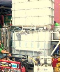 Dengan penambahan alat pencampur bahan bakar (fuel intake mixer), Alat pembangkit listrik kecil ini berbahan bakar biometan RNG – suatu gas alam terbarukan ( Renewable Natural Gas), gas alam atau gas bumi, seperti yang dialirkan jaringan gas (jargas ) PGN maupun yang tersedia dalam tabung terkompresi (CNG) dan LNG. Generator ( Genset) Bio Elektrik BG 5000 W berbahan bakar gas metan ini merupakan kelengkapan ( compatible) bagi digester Bioelektrik BD 7000L dalam mengolah sampah dan biomassa (aneka bahan organik) menjadi energi listrik. Genset berikut karburator gas ini menyediakan listrik dengan daya hingga 5 KVA atau 5000 watt. Pemenuhan konsumsi bahan bakar, dengan kesetaraan Fuel Gasoline 22 liter utk 8 Jam, adalah 3 m3 biogas murni ( biometan RNG)/ jam atau 12 m3 biometan per 4 jam penggunaan terus menerus/ hari. Penyediaan 12 m3 biometan/ hari dapat diperoleh dari pemurnian gas metan (CH4) suatu Tempat Pembuangan Sampah Akhir (TPAS), atau dari tambang batubara (coal bed methan/ CBM) maupun, dari digester mulai kapasitas Instalasi Bioelektrik BD 7000 L. Instalasi BD 7000 L ini menghasilkan biogas murni > 80 % metan (CH4) sebanyak 9.5 – 14 m3/hari yang memiliki daya nyala dan kalori tinggi sebagai bahan kompor guna masak memasak setara dengan 5,79 kg LPG, atau bahan bakar gas tersebut dapat menyalakan 1 unit genset 5000 watt selama 4 jam atau 12 hingga 15,12 KWH (kilo watt hour). Guna mendapatkan biogas I9.5 – 14 m3/hari, Instalasi Bioelektrik BD 7000L memerlukan bahan baku isian (bbi) berupa bubur limbah biomassa atau sampah organik ( perbandingan material dan air 1:1) untuk pertama kalinya 7 m3 (setara dengan berat 7 ton) dan, hari selanjutnya 0,42 ton/ hari. Dengan fermentasi, semua jenis limbah organik ( pertanian, perkebunan termasuk hasil cacahan pelepah kelapa sawit, peternakan berupa kotoran ternak sapi, kotoran ternak kerbau, ayam dan aneka ternak lainnya hingga sampah organik), gulma kebun ( alang-alang, rumput gajah, serasah dan perdu) dan gulma perairan ( eceng gondok, alga, ganggang laut) maupun limbah industri pengolahan hasil pertanian ( limbah cair pabrik kelapa sawit POME, limbah cair pabrik tahu dan sagu), atau kemudian disebut biomassa, di dalam alat kedap udara yang disebut digester, secara alami akan dihasilkan biogas dan pupuk organik. Gas, yang kemudian dialirkan kedalam alat pemurnian (purifikasi atau methan purifier) dari kandungan impurites ( H2S, Amoniak, CO2), akan menjadi murni (CH4> 70 %) yang kemudian dikatagorikan sebagai biometan RNG. Kesetaraan energi biogas tiap 1 m3 setara dengan 0.46 kg LPG = 0.62 liter minyak tanah = 0.80 liter bensin = 3.50 kg kayu bakar. Spesifikasi Genset 5000 Watt [ Bahan Bakar Biogas]: