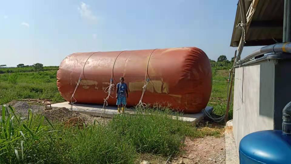 Balon penampung biogas BPT 60 m3 aman dari kemungkinan radiasi panas matahari dan air hujan. Bisa diletakkan di atas reaktor, genset, perangkat maupun diletakkan dekat dengan tempat reaktor pembangkitan (digester) maupun penggunaan biogas ( kompor, burner) atau, dekat dengan perangkat biogas ( kompor, genset, dll) serta kompresor penekan aliran ( membran compressor oilless).