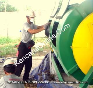 Mesin Kompos Biophosko® (Rotary Klin Elektrik RKE-1000 L) memiliki dimensi (tinggi= 180 cm, lebar= 165 cm dan panjang= 230 cm), berat keseluruhan 850 kg. Media pengolah sampah fiberglass bahan resin PL 07 LPE, jenis mat Wr 400 (mat anyam) dan mat Jushi -Kwe 300 (acak) 300 x 104, catalyst Butanox, mirror glase, pigmen HCA Dolphin Green serta aerosil HDK ini memiliki ketebalan dinding 3- 5 mm. Rangka mesin terbuat dari logam UNP, motor listrik 3 HP (3 Phase 220V/380V) 3000 watt, reducer ( Gear Box Rasio 1: 30, T 70), dilengkapi peralatan aerasi (exhaust fan) lainnya. Alat mesin ini merupakan jalan keluar bagi penanganan sampah dan limbah suatu kawasan -yang sebagian besar mengeluarkan sampah organik (rumah tangga, restoran, hotel), serta sampah yang dihasilkan kawasan komersial (pabrik, pasar, mall, apartemen, condominium, pabrik, perkebunan, usaha jamur, penggilingan padi, penggergajian (saw mill) dan sebagainya. Rotary Kiln Biophoskko® ini dirancang khusus bagi keperluan menyediakan alat media bagi pengaturan jumlah masukan oksigen ( aerasi) dan menjaga kelembaban, PH dan temperatur ( suhu) tertentu agar aneka bakteri populasi tinggi ( 10 pangkat 8) – dalam aktivator Green Phoskko ( GP-1) – dapat bekerja efektif dan efisien mengurai material organik. Sebagaimana diketahui, setiap jenis bakteri memiliki karakter berbeda dan juga kebutuhan khusus untuk mampu mendekomposisi material agar cepat, berkualitas dan higienis. Dengan demikian, bagi berjalannya pengomposan sesuai dengan standar teknologi Phoskko ( penguraian cepat, higienis, menghasilkan kompos berkualitas, bebas penyimpangan dari timbulan ulat dan bau) , maka penggunaan paket lengkap alat dan aktivator Green Phoskko ( GP-1) serta penggembur ( organic atau bulking agent) Green Phoskko ( GP-2) sangat direkomendasikan* ) |