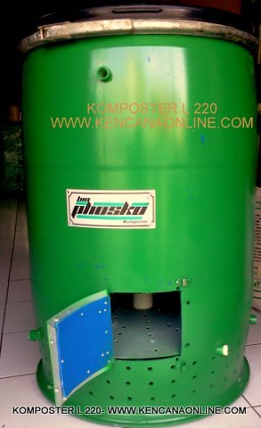 Komposter Biophoskko ®(L 220) berdimensi (tinggi= 90 cm, diameter= 55 cm) terbuat dari bahan drum plastik HDPE (jenis bahan yang kuat) ketebalan 3 – 3,3 mm jenis bahan yang kuat, memiliki tutup atas dengan kunci alumunium dan dapat dibuka secara putar, dengan instalasi pipa aerasi dengan Standar Nasional Indonesia (SNI), sekat pemisah material padat dan cair terbuat dari plat PVC standar SNI dengan ketebalan 2 mm, diameter 55 cm, cat dengan kualitas cat mobil, dan di dukung dengan peralatan lain (engsel, kunci, kran) tahan karat, bagian pintu memiliki lis terbuat plat terbuat dari alumunium, merupakan solusi tepat untuk penanganan sampah di rumah (khususnya sampah organik sisa-sisa pemakaian rumah tangga seperti : makanan, kertas, ikan, buah-buahan, sayuran, dll). Kapasitas keseluruhan suatu Komposter (L 220 liter) pada 0,2 m3 (200 liter) sampah atau setara berat 60 kg, akan mampu mengolah sampah dari kurang lebih 9 hari buangan sampah rumah- yang dikeluarkan suatu rumah tangga. Kapasitas olah sampah +/- 0,22 m kubik ~ 220 liter cocok digunakan untuk pengolahan sampah organik di rumah. Diketahui, setiap jiwa mengeluarkan sampah 2,6 liter per hari atau 13 liter per keluarga dengan 5 jiwa. Komposter ini berkemampuan memberikan aerasi yang cukup bagi bekerjanya konsorsium bakteri dalam aktivator Green Phoskko (GP-1), menjamin kestabilan pH, menjaga suhu berada pada kondisi mesofilik (30 – 50 derajat C), menjaga kelembaban pada 40 – 60 % kadar air. Bahan habis pakai dalam pembuatan kompos dengan dosis 1 per mil (1/1000) aktivator GP1 dan 3 % mineral penggembur GP2 diluar harga komposter.