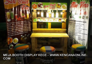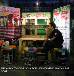Meja stand Booth Display 1 unit terbuat dari kayu pinus atau Jati Belanda yang artistik, bisa dibongkar pasang dengan ukuran (PxLxT) 100 x 100 x 90. Meja Display KECE merupakan meja promosi yang sangat fleksibel ( knock down dan ukuran compact ), kuat serta harga sangat terjangkau. Bisa digunakan sebagai media promosi atau berjualan, dipakai di mall, pasar modern, pasar tradisional, pasar kaget, pasar malam, display, stand, bazar, maupun pameran, DLL.
