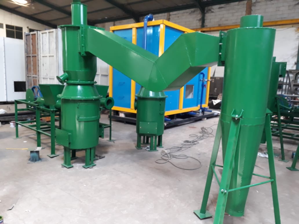 Untuk membangun sistim produksi bersih (zero waste) sekaligus menyediakan energi kalor pemanasan reaktor pirolisis diatas, digunakan tungku gasifier atau reaktor bagi proses gasifikasi atas semua jenis sampah yang tidak dapat didaur ulang (unrecycle) antara lain kain perca, limbah aneka kemasan, potongan kayu dan biomassa kering lainnya.