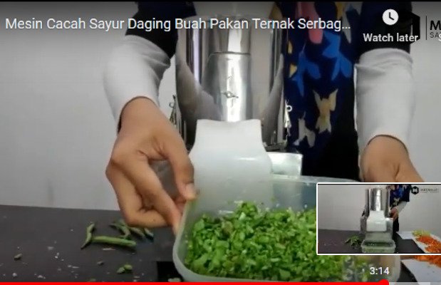 Menghancurkan sisa makanan, bahan organik asal ternak ( selain tulang keras) dan masak ukuran besar sangat penting bagi pembuatan kompos. Hasil pencacahan langsung masuk mesin kompos, dalam beberapa hari akan menjadi pupuk bagi tanaman sekitar rumah Mesin Pencacah Organik Mini MPOM 50 Elektrik Berdimensi (24 x 20.5 x 35.5) cm, Kapasitas mencacah organic ( sisa makanan, masak, dan aneka daun) 50 Kg/ jam, diameter inlet 9,5 cm, berat 11 kg, Ruang penghancuran (16 x 16.9 ) cm Daya listrik rumah 400 W ( 1 Phase)
