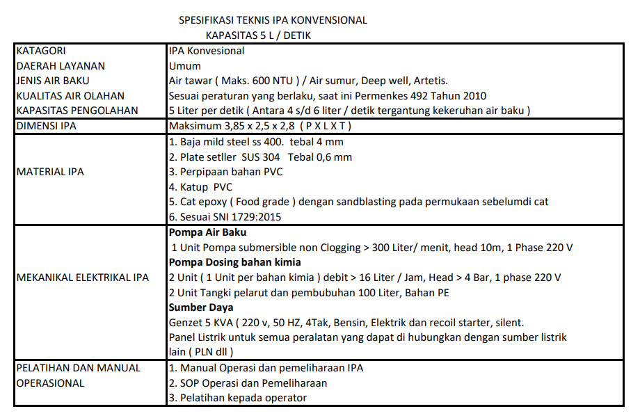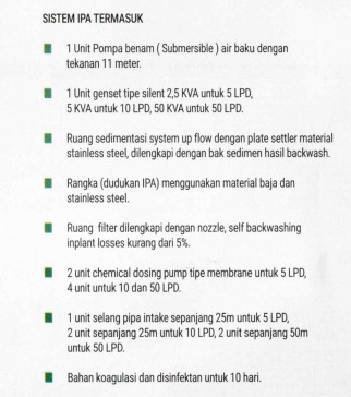 Kapasitas 5 liter per detik atau 18 m3 per jam sangat efektif menyediakan kebutuhan air baku bagi suatu kawasan seperti perumahan, komplek rumah toko, pabrik, sekolah dan kawasan komersial lainnya. Perolehan air baku dapat menghasilkan penjualan air baku maupun, untuk perolehan pendapatan lebih tinggi, dengan dilengkapi filter pengolah air minum ( RO Water), dapat pula menjual kualitas air langsung minum.