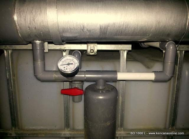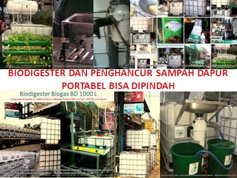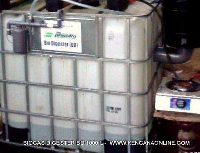 BioDigester Biogas BD 1000L atau Portable Biogas Biodigester adalah pembangkit biometan ( biogas murni) bagi kegiatan masak memasak. Setiap hari, pada kondisi ideal, menghasilkan 1 m3 biogas, 50 liter lumpur probiotik dan 10 kg pupuk kompos padat. Perolehan 1 m3 biogas memiliki energi pembakaran 6000 kkal setara dengan 1/2 kg LPG, mencukupi energi masak 1 keluarga/ hari. Sedangkan 50 liter lumpur probiotik, setelah dicampur dengan air 20 kali ( menjadi 1m3) adalah media hidup yang menumbuhkan pakan alami ikan (plankton), mencukupkan pengkayaan probiotik bagi kolam ikan ( per siklus 3 bulan) bagi kolam portabel maupun konvensional. Lumpur sisa media tumbuh ikan, selanjutnya, dapat digunakan sebagai media hidup tanaman akuatik (hidroponik) sayuran maupun tanaman lainnya. Disamping penggunaan di rumah, digester BD 1000 L dapat juga digunakan bagi penyediaan logistik bergerak ( camping, pembangkitan energi dalam rangka survival di hutan dan pedalaman) maupun peraga pendidikan di sekolah. Unduh (download) Video Biodigester BD 1000 L Biodigester BD 1000 L, dengan kebutuhan lahan mulai 2 m2 ini, terdiri dari : 1. satu (1) reaktor tangki berbahan plastik HDPE berkapasitas 1000 liter (275 gal), memiliki dimensi PLT ( Panjang 1.2 m, lebar 1 m, tinggi 1,16 m) ketebalan 3 – 5 mm (double layer), dilengkapi UV protection, rangka penguat logam ( welded steel wire mesh), bisa bertahan hingga diatas 5 tahun, Valve 75 mm (3 Inch), Filling Open 220 mm, dilengkapi stand kaki (Palate) dari logam (steel). Dirancang kuat bagi tekanan gas sampai 20 kpa (kilopascal), sementara biogas secara umum hanya memberi tekanan 3 kpa. 2. satu (1) unit Penghancur Sampah Makanan FMM 1200 ML melumatkan semua sisa makanan dan kegiatan masak meliputi antara lain tulang kecil ayam, tulang rawan, sisa daging, duri ikan, sisa nasi, sisa makanan kulit buah dan segala jenis sayuran akan hancur. Pencacah sampah FMM 1200 ML ini terpasang pada zink (tempat cuci piring) stainless berdimensi PLT setara ( 500 x 460x 195) mm, memiliki kapasitas tampung grinder 1200 ml, kecepatan (RPM) RPM r/ m : 1420, Voltase 220, power 560 watt, kemampuan menghaluskan hingga 3 mm, sehingga sisa makanan dan/atau sampah organik dapat langsung tergiling hingga halus dan lembut, sangat aman dan mengamankan dari tersumbatnya pipa saluran air dapur. Penggunaan mesin grinder penghancur sampah bagi pemenuhan digester bekerja 30 menit/ hari, atau mengkonsumsi listrik 1/2 KWH/ hari, dengan biaya catu ke PLN setara Rp 650/ hari. 3. satu (1) unit pemurnian biogas (Methan Purifier) guna menaikan biogas pada kualitas biometan RNG ( komposisi CH4> 70 % dan H2S free) 4. satu (1) gas holder bahan plastik PE tubular tebal 0,15 mm, berdimensi (panjang= 100 cm, diameter= 1.80 cm) memiliki kapasitas tampung hingga 1,5 m3, 5. perlengkapan instalasi ( slang serat, valve, water trap, pipa PVC, pengukur tekanan/ manometer berskala 0-16 kkpa, gas pumps ) hingga kompor 1 tungku. 6. Aktivator bakteri bagi pembangkitan biogas pada material bukan berasal dari kotoran ternak sebanyak 5 Pack GP7 @250 gram, bagi starter bulan pertama. Selanjutnya, populasi bakteri berkembang melipatganda. 7. dua (2) buah drum kapasitas 100 liter digunakan 1 unit untuk penampung lumpur probiotik menjadi model kolam ikan dan 1 unit bahan baku isian (bbi) harian. Kapasitas biodigester 1000 L atau 1 m3 dengan keperluan input material harian 50 kg bubur sampah atau biomassa ( setelah penambahan air 50%). Hasil fermentasi sampah dan biomassa ( termasuk sisa makanan, rumput halaman, kotoran hewan ternak peliharaan dan aneka sisa tumbuhan lainnya) dalam BD 1000L yang diperlengkapi pemurnian (purifikasi) adalah metana ( CH4), CO2 ( karbondioksida), sedikit sekali N2, H2, O2 dan H2S) . Biogas setelah dilewatkan pemurnian adalah methana ( CH4) yang tergolong energi terbarukan, Renewable Natural Gas (RNG). Biometan RNG dengan kandungan CH4 > 70 % bersifat mudah terbakar ( flammable) namun tidak memiliki sifat eksplosif, bebas dari kekhawatiran terjadinya ledakan. Berbeda dengan LPG, yang terdiri dari sifat propana dan buthana. Pada kondisi pemenuhan material campuran air dan bubur biomassa atau sampah 50 liter/ hari, kehalusan material subtract < 3 mm, PH~ 7 (netral), suhu di kisaran 35 derajat C, Instalasi BD 1000 L menghasilkan biogas pada kemurnian > 70 % metan ( CH4) sebanyak 1 m3 yang memiliki daya nyala dan kalori 6000 kkal sebagai bahan kompor guna masak memasak setara dengan 1/2 kg LPG atau, setara bagi kebutuhan masak suatu keluarga setiap hari. Instalasi pembangkitan energi biogas ini efektif digunakan di dapur, sedekat mungkin dengan lokasi penempatan kompor dan bak cuci. Dipasang dan dimobilisasi dengan mudah, tanpa harus dibenam dalam tanah, sangat layak digunakan sebagai alat peraga pendidikan sekolah khususnya mata pelajaran lingkungan hidup, biologi, fisika, kimia, maupun kesejahteraan keluarga.