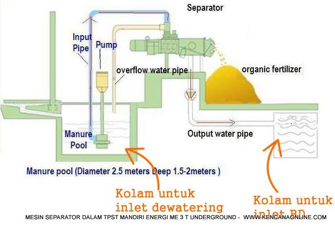 Sampah organik akan terpisah antara cairan lindi (leacheate) dengan material padat (solid). Bentuk cairan menjadi bahan baku bagi pengisian biodigester, sementara material padat bagi proses lanjutan dekomposisi dengan komposter