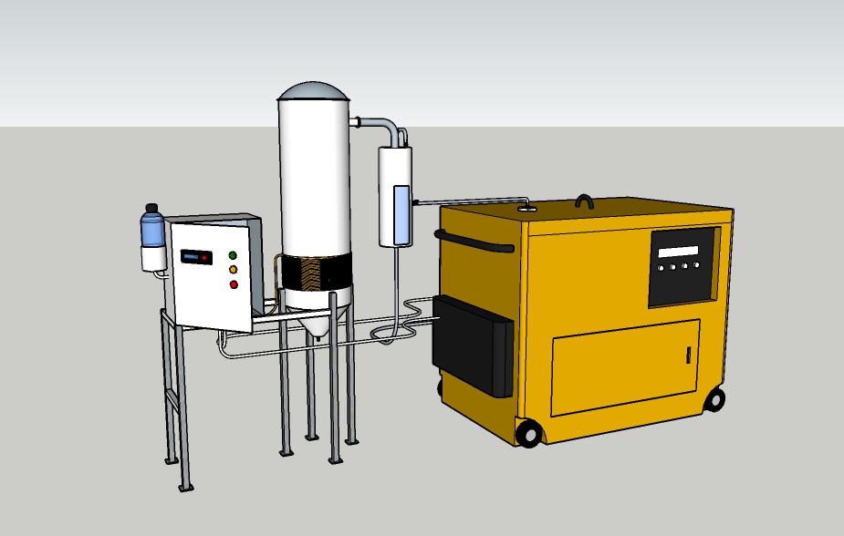 Dengan teknik pirolisis menggunakan cara kerja induksi electromagnetic, sampah plastik yang telah dimampatkan oleh mesin press hidrolik akan mengalami thermal catalityc cracking berubah jadi fasa gas ( C1-C4). Gas menjadi 50-70% bahan bakar generator listrik hybrid ( mix fuel hydrogen, gas dan minyak).