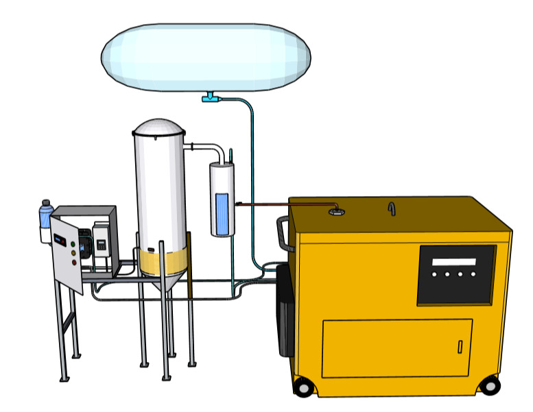 4. Nyalakan genset diesel pembangkit listrik ( yang telah dilengkapi HHO) hybrid sampai gas keluaran pirolisis habis