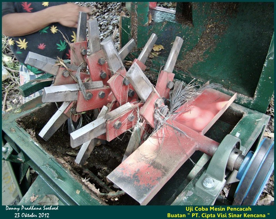 Mesin Pencacah Sampah (Model MPO 850 HD) ini berguna untuk memudahkan proses pengomposan sampah organik melalui kegiatan mencacah sebelum masuk kedalam Rotary Kiln ( media proses dekomposisi) sampai menjadi kompos. Dengan mesin ini, sampah organik ( material sisa yang berasal dari makhluk hidup meliputi sisa sayuran, daging, buah, dll yang berukuran besar ) akan dibuat ukuran kecill sehingga lebih mudah dan cepat terdekomposisi dalam proses pengomposan.