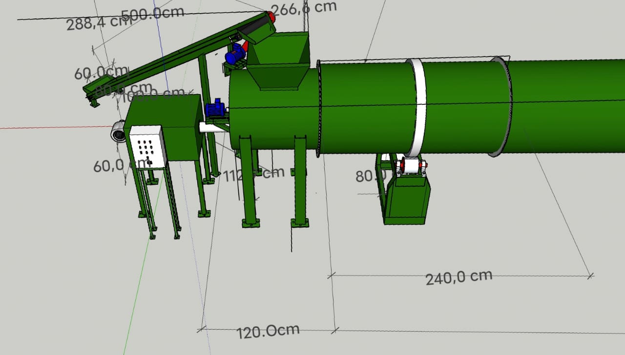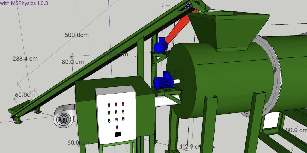 Mesin Pengering Berputar ( Rotary Dryer) ini berguna untuk mengeringkan aneka jenis hasil pencacahan ( shredder) sampah domestic ( plastic, organic dan biomassa kering) seperti dalam proses produksi RDF ( Refuse Derived Fuel), maupun pengolahan secara gasifikasi maupun pirolisis. Keunggulannya, untuk menghemat biaya energy, bahan bakar pengeringan dapat memanfaatkan bahan bakar (BB) Refuse Derive Fuel (RDF) biomassa.