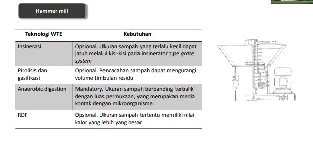 Mesin Penggiling dan Penghancuran Sampah (Schedder Machine), Pencacah Organik dan Pencacah Plastik (Chruser) menyiapkan aneka jenis sampah anorganik dan biomassa kering menghasilkan densitas dan kepadatan massa bagi pembangkitan energi panas gasifikasi, pirolisis dan biodigester.