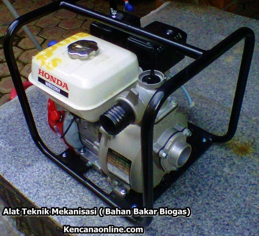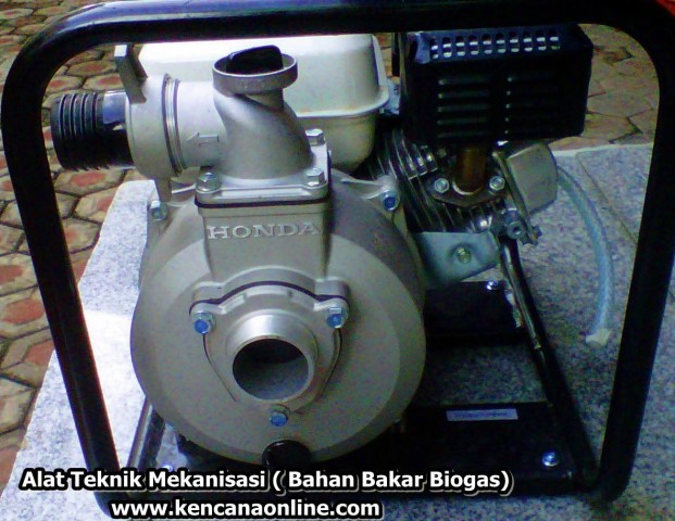 Banyak tehnik untuk melakukan irigasi, Salah satunya dengan pompa air. Air diambil dari sumur dalam dan dinaikkan melalui pompa air, kemudian dialirkan dengan berbagai cara, misalnya dengan pipa atau saluran. Pada musim kemarau irigasi ini dapat terus mengairi sawah. Maka melihat kebutuhan itu diciptakanlah Pompa Air Irigasi Honda (Biogas)
