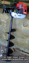 Alat pengebor tanah bermesin yang praktis dan efisien dapat digunakan untuk membuat lubang di berbagai jenis tanah . Cocok di gunakan untuk penanaman pohon guna penghijauan, membuat sumur resapan untuk kesuburan tanah dan antisipasi banjir, juga dapat di pakai untuk pembuatan lubang untuk straus pile atau pembutan lubang untuk fondasi rumah.