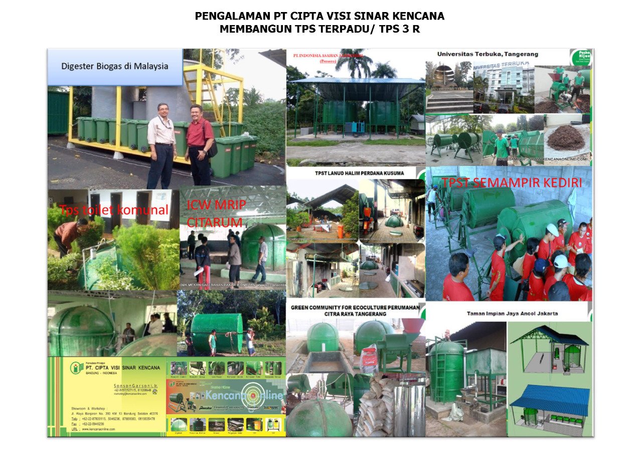 Perusahaan PT Cipta Visi Sinar Kencana (CVSK) dengan metoda Biophos_kkogas [Biodigester-Piroliser-Komposter-Gasifier] telah berpengalaman sejak tahun 2005 dalam pendampingan maupun penyedia alat mesin bagi pengolahan sampah domestik sejalan dengan kewajiban penimbul sampah kawasan melakukan penyelesaian di sumber timbulannya sebagaimana UU No 18/2008 dan PP No 81/2012.