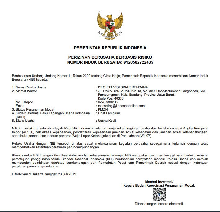Marketing: E mail: marketing@kencanaonline.com, Jl Raya Banjaran No 390 Pameungpeuk KM 13 Bandung Selatan 40376, Telp +62-8112221160, SMS/ WA: +62-811208648, Faximili: +62-22-5946236